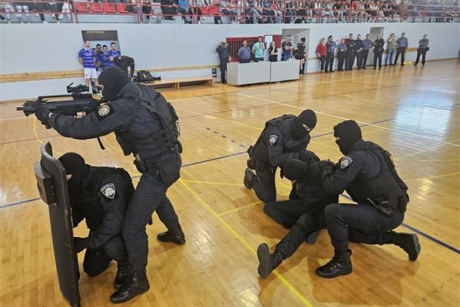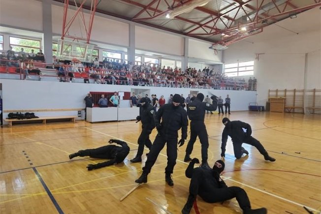 Policijski demo tim interventne policije prikazao je okupljenima vježbe primjenu policijskih ovlasti, tehnike borilačkih vještina, obranu od naoružanog i nenaoružanog napadača, postupanje kod težih narušavanja javnog reda i mira i sl.