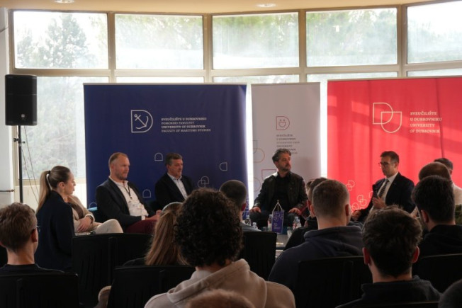 Program je započeo uvodnim dijelom, nakon čega je uslijedila panel rasprava na kojoj predstavnici kompanija odgovaraju na pitanja studenata Pomorskog fakulteta i učenika Pomorsko-tehničke škole Dubrovnik.
