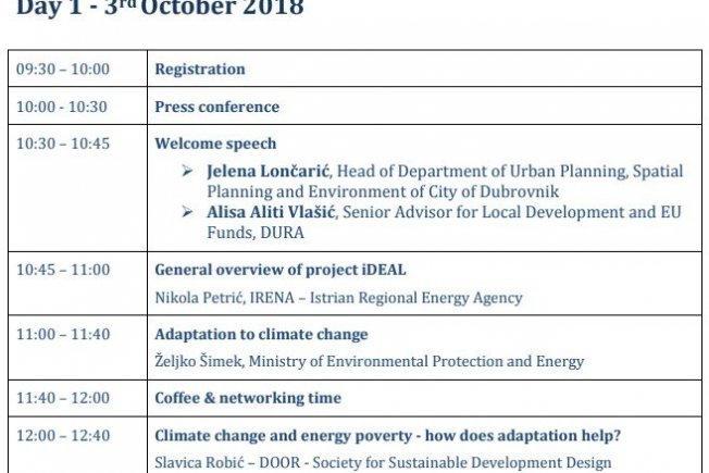 'Digital planning and managing risk of climate changes' je dvodnevni događaj koji je danas otvoren u organizaciji Razvojne agencije Grada Dubrovnika u sklopu EU projekta iDEAL.
