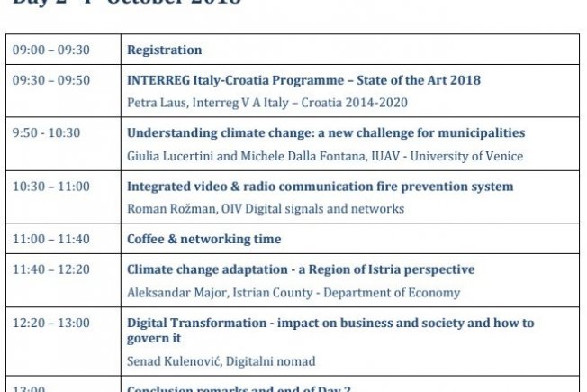 Na predavanjima i panelima razgovaralo se o aktualnim temama vezanim za klimatske promjene, njihovom planiranju i utjecaju na okoliš te mogućnosti digitalne transformacije kao važnog dijela planiranja rizika od klimatskih promjena. Uz Dubrovačku razvoju agenciju DURA, partner projekta je Istarska Regionalna Energetska agencija IRENA, te talijanski partneri.