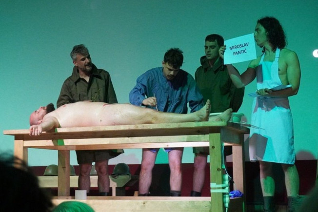 Redatelj predstave je Petar Pejaković a glume Maša Božović, Slaviša Grubiša, Pavle Prelević, Miloš Kašćelan, Pavle Novaković (zamjena za Emira Ćatovića) i Kristijan Blečić. Predstava je dosad odigrana u Splitu, Zagrebu, Sarajevu, Beogradu i Podgorici, a nova se gostovanja očekuju i najavljena su širom bivše države. Svakako treba pohvaliti organizatora što je ne samo pozvao ansambl predstave, nego nakon nje i omogućio razgovor s glumcima. Doista, mnogi su gledatelji nakon predstave ostali u kino sali i sudjelovali u razgovoru s glumcima među kojima je samo jedan rođen prije početka rata, a mnogima je ovo bio prvi posjet našem gradu.