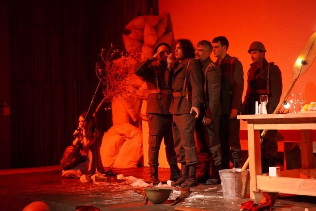 Glumica Mašu Božović odigrala je svoju ulogu maestralno, kao i ostatak ansambla. Dramaturginja Anja Pletikosa pojasnila je kako uloga djevojke koja većinu predstave nijemo drži sadnicu masline, naglašava ludilo pljačkaškog pohoda, a uz to je bilo i još nekoliko dojmljivih rješenja koja su predstavu učinila još boljom i upečatljivijom.