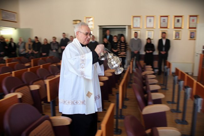 Župnik katedralne župe Velike Gospe don Stanko Lasić blagoslovio je danas Gradsku vijećnicu uz nazočnost gradonačelnika Andra Vlahušića, njegovih zamjenika, pročelnika i službenika Gradske uprave. Tom prigodom uputio je riječi molitve i blagoslova, a okupljenim službenicima održao je i prikladnu propovijed.
