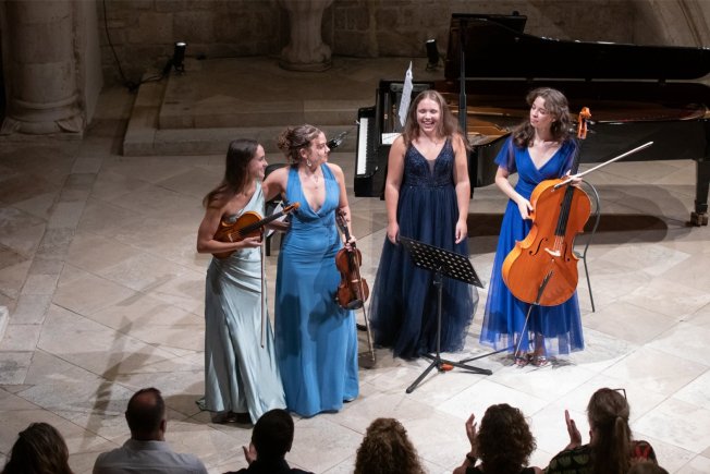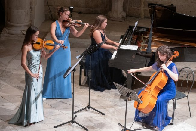 U komornom sastavu Umjetničke škole Luke Sorkočevića nastupili su mladi talentirani čelisti Marta Kekez, Iva Nodilo, Tia Duper, Lovro Marković i Đive Ćatić, Mia Klinac, (glasovir) pod mentorstvom mr. art. Vande Đanić, prof. savjetnice te Dorotea Bagović, Karmen Begić, Marta Ćatić i Paula Ćatić (violina), Zita Medo (violončelo), Daris Omerčahić (gitara) te Lena Eva Crnjak (violončelo) pod mentorstvom Dore Kamber, univ. spec. mus.
