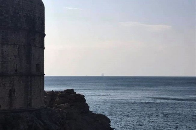 "Je li mi se priviđa ili je ovo naftna platforma ispred Bokara u sjeni? Stojim na Brsaljama i ne znam jel' sanjam. Toliko je bura očistila da se vidi do Italije ili voze kakvu dizalicu/most/nešto treće?", zapitao se na društvenim mrežama jedan Dubrovčanin koji je podijelio zanimljivu fotografiju na Facebooku.
