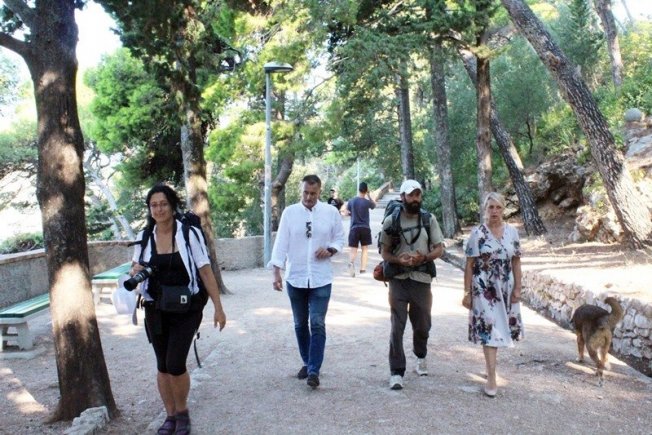 Zamjenica gradonačelnika Grada Dubrovnika Jelka Tepšić i glavni tajnik Dubrovačkog saveza športova Alen Bošković dočekali su danas u parku Gradac hrvatskog hodača na duge staze Nikolu Horvata i njegove suradnike na projektu "Croatian Long Distance Trail".