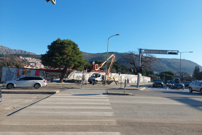Nakon što su uklonjeni iz povijesne jezgre, ukrasi se uklanjanju i širom grada, pa tako pokraj lapadskog stadiona.