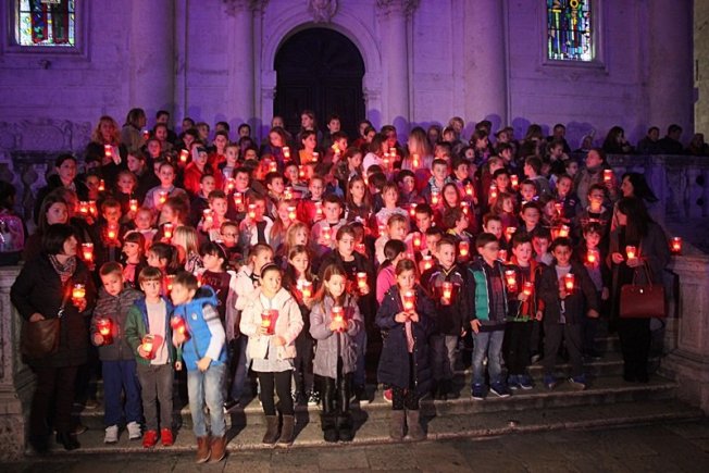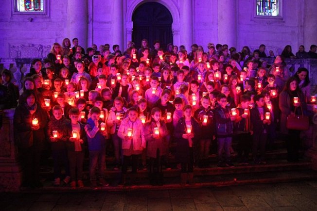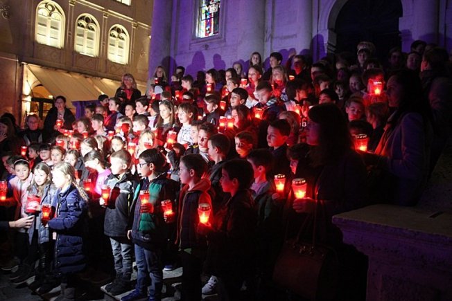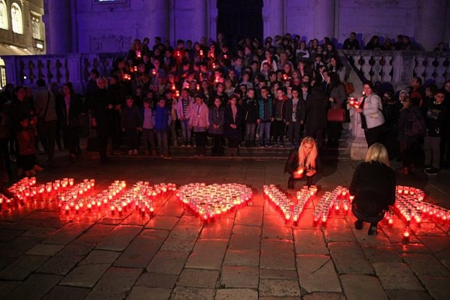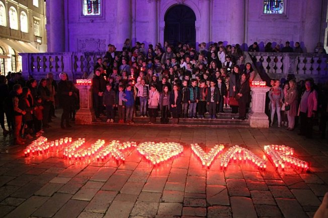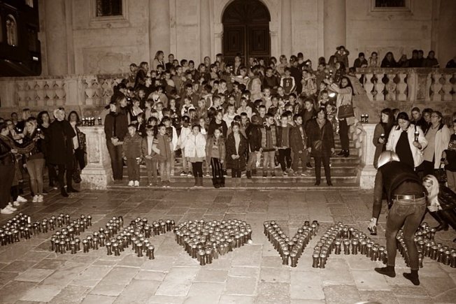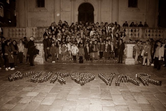 DUBROVNIK ZA GRAD HEROJ Dubrovački učenici ispred Svetog Vlaha lampionima ispisali 'Vukovar' (FOTO/VIDEO)