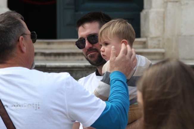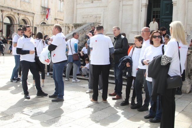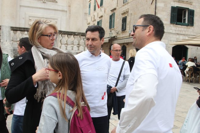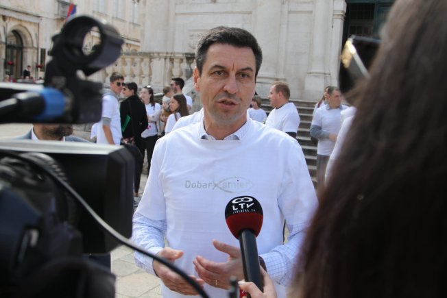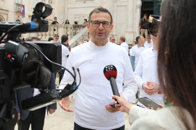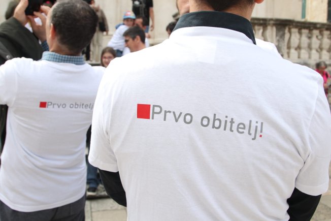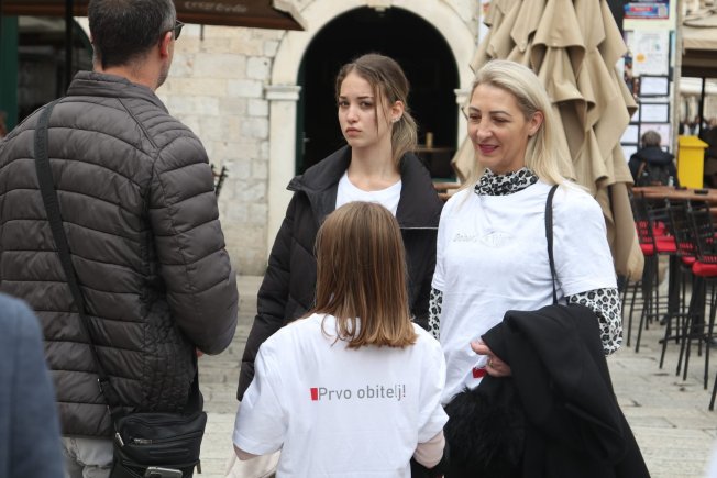 Ladislav Ilčić, hrvatski zastupnik u Europskom parlamentu i dopredsjednik Hrvatskih suverenista, Ivana Marić iz udruge "Obitelji3plus", Dživo Brčić, pročelnik za društvene djelatnosti grada Dubrovnika i gradski vijećnik Krešimir Marković, danas su održali konferenciju za medije ispred crkve sv. Vlaha.