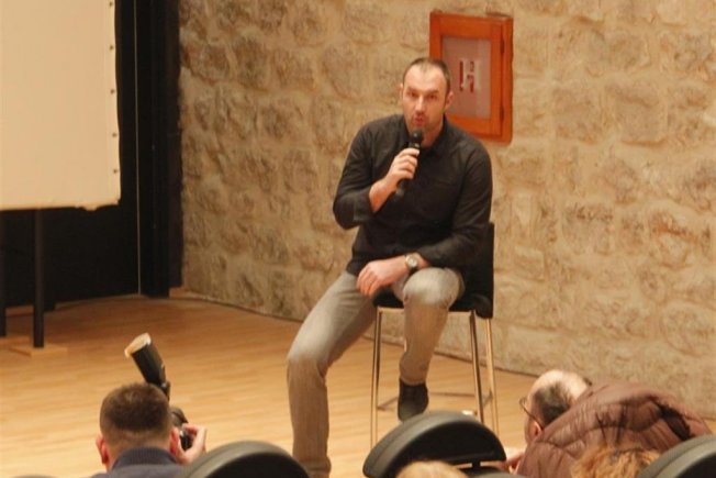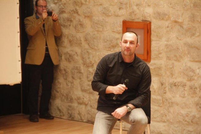 Na početku predavanja zahvalio se publici koja ga je došla poslušati. Kazao je kako se prije dva dana vratio iz Iraka, te da će rado odgovarati na pitanja iz publike. Između pitanja, publika je gledala kratke video isječke sa njegovih ratnih terena, pritom uživajući u ljepoti fotografija.