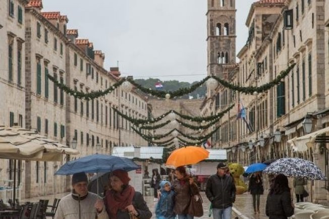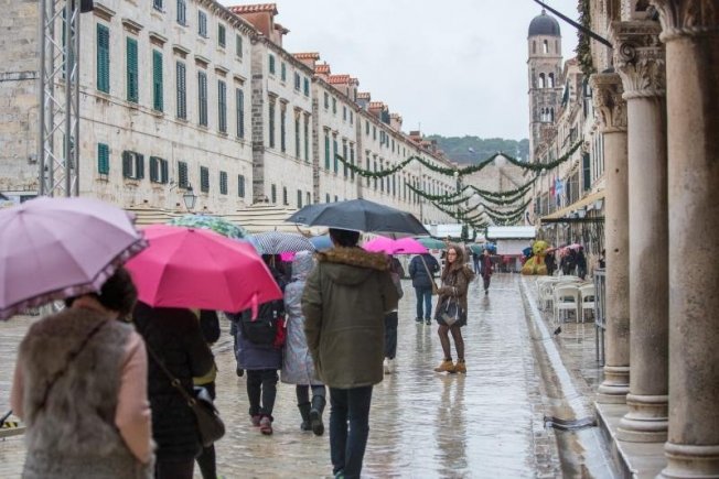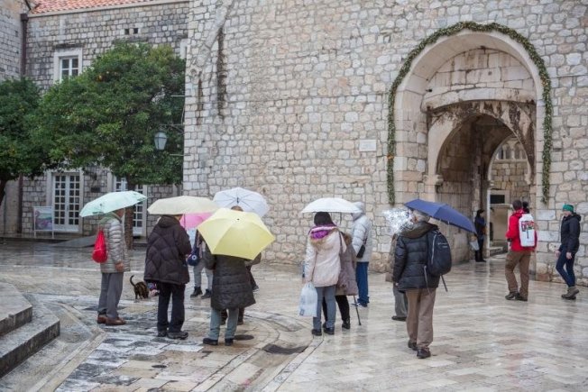 Nakon više od mjesec dana suhog vremena, u Dubrovniku pada kiša koja nije omela turiste u obilasku Grada.