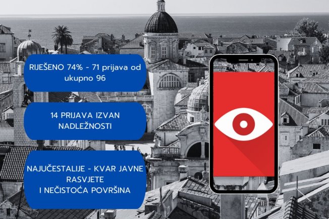 Zahvaljujući direktnom kontaktu s građanima, najveći dio manjih popravaka moguće je moguće otkloniti u najkraćem roku tako da je u listopadu riješena ukupno 71 prijava odnosno 74 posto od ukupno obrađenih 96 urednih prijava na Dubrovačkom oku, dok je preostalih 25 prijava u postupku rješavanja. Također, na platformu je pristiglo i dodatnih 14 prijava izvan nadležnosti Grada Dubrovnika koje su dalje proslijeđene nadležnima, dok 7 prijava nisu objavljene jer se radilo o ponovljenim ili novim prijavama koje ukazuju na isti problem. Najučestalije prijave su se odnosile na kvarove javne rasvjete (16), čistoću javnih površina (16), kršenje komunalnog reda (12) te sanacija prometnih površina (10).