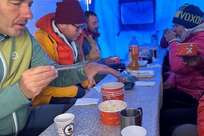 Smjestili smo se u hotelu u najstrožem centru grada- s pogledom na glavni gradski park i na njihov „Stradun“. Kako smo došli kasno u noći u hotel preostalo nam je samo na brzinu večerati i poći u krevet. Ujutro smo na doručku sreli ekipu koja se vratila s Ararata. Slovenci, Bugari...Vrijeme ih je poslužilo i prepričavaju kakve su probleme imali s visinskom bolesti. Sve izgleda uobičajeno. Optimistični smo. Nakon doručka krećemo s tri kombija. U jednome nam je planinarska oprema, a u druga dva mi. Vozimo se manje od pola sata i onda skrećemo jedinom cestom, makadamaskom, koja ide prema podnožju Ararata. Zastali smo, pozirali i fotografirali se. Ararat je moćno stajao ispred nas. Bez oblačka, ali s vidljivim snijegom kojih 500-tinjak metara pri vrhu. Smijemo se i dalje i uzbuđeni jedva čekamo krenuti na uspon. Zaustavili smo se na 2200 metara nadmorske visine, na jednom platou. Tu su nas dočekali, mahom Kurdi, s konjima. Ponovo smo se fotografirali i potom krenuli s rukscima na leđima dok su konji natovarani našom opremom. Cilj - prvi kamp na 3200 metara. Staza je lagana - trava i zemlja. Idemo uglavnom u kratkim rukavima, a dobar dio nas na nogama ne nosi gojzerice nego tenisice za treking. Nakon nekih pola sata stižu nas konji i prolaze pored nas, a mi veselo ćakulamo s Jovanom. Govori nam o tome kako trebamo piti barem 3 litre tekućine, komentiramo konzumaciju elektrolita i nekih tableta za ublažavanje visinske bolesti. Bez ikakvih problema penjemo se do kampa. Iako je i to mnogima najveća visina na kojoj su bili, nikakvih nuspojava nemamo. Kamp se nalazi na rubu neke uzvisine i ima predivan pogled na Dogubayazit. Smjestili smo se u osam šatora, po dvoje u svaki, raspremili opremu i krenuli na večeru. Hrana, kako tada tako i svih dana, je bila vrlo dobra. Pogotovo doručak. Nismo se imali na što žaliti. Kuhari su bili i maštoviti i nudili su poprilično tradicionalnih jela- juha, sireva, voćki i maslina. Da im ne bude baš tako lako potrudili smo se mi sami- šestoro nas je odabralo vegetarijanski menu. No, kuhari se nisu dali smesti. Čim smo legli u šatore počeo je nevjerojatan grad. Gotovo sat vremena promišljali smo hoće li nam nevrijeme srušiti šatore, hoće li prokisnuti te što ćemo onda. Nekako je prošlo s par kapi unutar ponekog šatora. Najgori od šatora smo zamijenili i krenuli spavati. Nakon doručka krećemo na aklimatizaciju - stazom do 3800 visine. Sunce je i vruće je poprilično. Teren na ovoj stazi je drugačiji - vulkanske stijene i kamenjar. Ostali smo preko sat vremena na toj visini izležavajući se na suncu, a onda smo se vratili do kampa. Ovu noć nas je iz lepeze vremenskih nepogoda zadesio jak pljusak. Šatori su opet malo popustili, ali ništa strašno. Spakirali smo ujutro stvari, odnijeli ih do konja te krenuli na doručak. Nakon doručka isprobali smo dereze, kako bi bili spremni na led koji nas je trebao čekati nekoliko završnih stotina metara uspona. Još uvijek smo svi radosni i nemamo nikakvih većih tegoba. Malo glavobolje kod nekoga, malo vrućine u glavi kod drugoga, malo mučnine kod treće. Prešli smo travnate površine koje prolaze pored drugih kampova, a potom serpentinom po kamenjaru krenuli prema drugom kampu na 4200 metara. Vrijeme se počelo kvariti, a više nismo hodali kompaktno u grupi nego su neki počeli zaostajati. Sve se teže disalo prema kampu. Kisika u zraku je sve manje, pa se korak sveo na minimum. Žuriti se ne može u tim uvjetima. Korak po korak. A svaki je korak, kako je jedan od nas primjetio, novi rekord. I za kraj uspona iz one lepeze nevremena dobili smo jak vjetar i snijeg. Toliko je jako puhalo da su nas u blagavaoni dočekali tako da su držali šator da ga vjetar ne odnese. Jovan nam ne da da spavamo po dolasku u kamp nego smo se družili u ovom velikom šatoru. Za razliku od prvog kampa ovdje smo smješteni svi u jedan veliki šator. A uvjeti u njemu su poprilično problematični. Lako što smo poredani kao sardine. Šator je puštao, na većem dijelu krova ležala je ogromna količina snijega. Rekli su nam da je ne skidamo jer da će ona držati šator da ne odleti uslijed jakog vjetra. Pod je bio blatnjav i pun vode, pa smo jedva nekako s podlogama (karimatima) posložili ležajeve. Kasnije su se pojavili i miševi - avanturisti koji su znatiželjno promatrali i proučavali i nas i sadržaje naših transportnih torbi. Za razliku od prvog kampa gdje su bila tri poljska WC-a, u drugom kampu je WC bio- „all around“. A vanka pada kiša i snijeg i temperatura je oko nule. Od osam sati navečer do ponoći legli smo kao spavati. Poneko je uspio „ubiti oko“ nakratko, ali većina nije. Nestrpljivi smo i napeti oko završnog uspona. Dogovor je da se nađemo u jedan sat ujutro u blagavaoni te da se nakon doručka, oko dva sata, uputimo prema vrhu. Visinska bolest već je dobrano nagrizla neke članove ekspedicije. No, mi se nadamo kako ćemo ipak svi krenuti dalje. Došli smo u šator na doručak i ponijeli svu opremu. Vrijeme se dodatno pogoršavalo. Padao je snijeg, grmilo je i puhao je jak vjetar. Tri vodiča kreću u noć s nas 14-oro. Penjemo se kao svijetleća zmija jer su nam na glavi čeone lampe. No, vrlo brzo uviđamo da ne ide kako treba. Još dvije članice ekspedicije odustaju i vraćaju se u kamp. Nastavljamo dalje do nekih 4500 metara visine i tu odustaju još dvojica članova eskedicije. Brutalno vrijeme i visinska bolest nisu im dali dalje. Grmljavina pojačava, a snijeg s vjetrom počinje padati gotovo vodoravno. Stali smo na oko 4700 metara. Vodiči se nešto došaptavaju i onda Jovan kaže da je gotovo. Da nema smisla ići dalje. Pita glavnog vodiča, Kurda Resula koji već deset godina vodi na Ararat, za potvrdu. No, ovaj odgovara da se može do vrha. Jovan pita još dva puta, ali Resul je istog stava. Sedmoro članova ekspedicije odlazi natrag do kampa u pratnji Jovana, a ostaje samo nas četvoro s Resulom. Više nije moglo biti odustajanja. Svako od