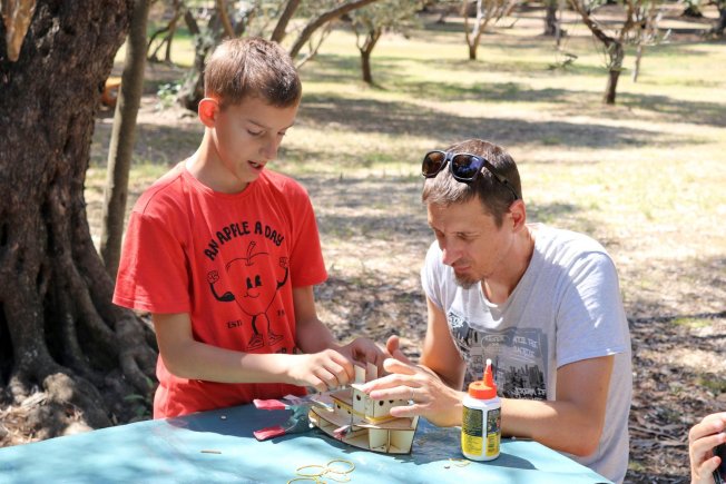 Prvog dana Ljetne škole brodogradnje preko 20 djece i nekoliko roditelja sudjelovalo je na radionici brodomodelarstva na kojoj su izrađivali raznovrsne makete brodova, kao što su: kajaci, primorske barke, pasare i remorkeri. Radionicu su vodili Mladen Mitić iz Modelarskog instituta Nave Dumins i Vanja Glavočić iz Društva brodomodelara Argosy, uz pomoć Ivice Bilića, osnovnoškolca koji redovito pohađa njihove radionice.