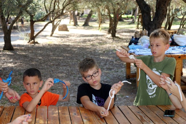 Radionica mornarskih čvorova održala se drugog dana škole, na kojoj je bilo preko 20 polaznika i nekoliko roditelja. Radionicu je vodila Hiliana Brunsko, uz pomoć Vlaha Marčnika iz Jedriličarskog kluba Hydro. Na radionici su polaznici nakon uvodne priče o konopima, vrstama i primjenama, naučili vezati mornarske čvorove, kao što su: pašnjak, opašnjak, plutačin, sidreni, zastavni, vrzni, trubni, ženski i muški čvor te osmica, a na kraju su radili bacalo.