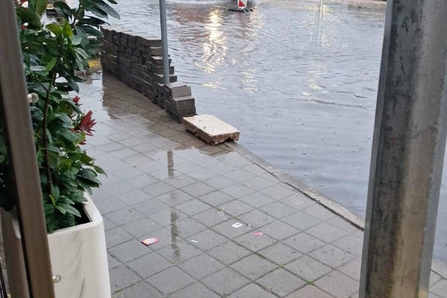 Kako nam javljaju sugrađani, djeca ne uspijevaju doći do Ekonomske i trgovačke škole jer se niz skaline spuštaju slapovi kiše. Brojne su druge ulice potopljene pa su pješaci, čak i oni s ombrelama, mokri do kože zbog snažnih naleta vjetra.