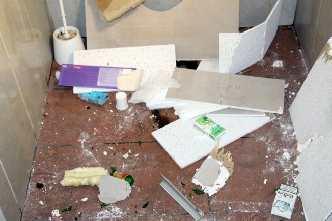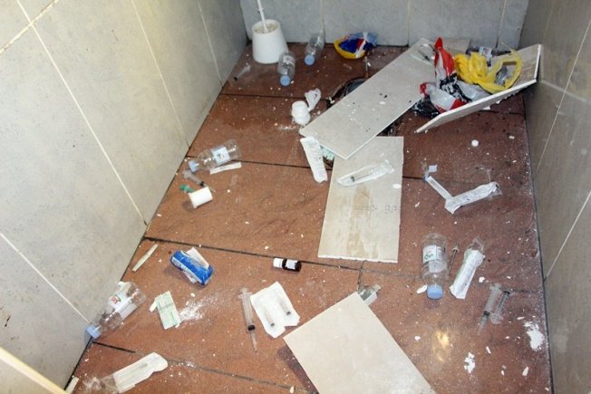 Prilikom radova u u muškom wc-u, nakon dizanja krovne oplate, otkriveno je skladište pribora za intravenozno konzumiranje, 'papir za kuhanje', odbačeni odjevni predmeti umrljani fekalijama i folija od čokolade.