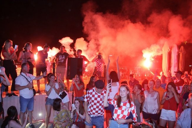 Sunset Beach u Uvali Lapad centar je najvatrenijeg praćenja utakmica i navijanja. Kako je proslavljena pobjeda Hrvatske nad Rusijom pogledajte u fotogaleriji i videozapisu.
