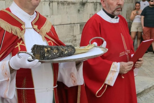 Procesija s moćima lijeve ruke sv. Vlaha krenula je ispred katedrale i išla do crkve svetog Vlaha gdje je euharistijsko slavlje predvodio rektor crkve mons. Ivica Pervan.