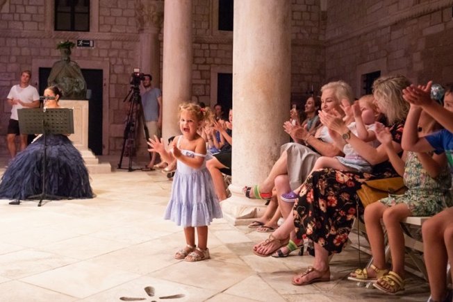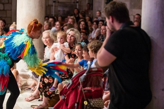 Besplatan koncert za djecu „Karneval životinja“ u prepunom atriju Kneževa dvora, kamo je prebačen iz Sponze zbog velikog interesa publike, održao se sinoć, 3. kolovoza, na radost brojne male i velike festivalske publike. Uz dubrovačke glazbenike koji su izveli ovo popularno djelo koje lako nalazi put do srca djece diljem svijeta, u ulozi pripovjedačice - Keke papagalice, našla se dramska umjetnica Srđana Šimunović koja je sinoćnji zanimljivi program najavila kao „melem za uši, kulturni događaj uzbuđujuće neponovljivosti“.