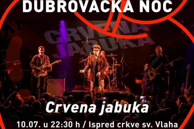 Nakon svečanog otvaranja 72. Dubrovačkih ljetnih igara te tradicionalnog vatrometa, u subotu, 10. srpnja 2021., u organizaciji Grada Dubrovnika i Turističke zajednice grada Dubrovnika, za sve Dubrovčane i njihove goste, ispred crkve sv.Vlaha s početkom u 22.30 sati, koncert će održati Crvena jabuka, jedan od najpopularnijih pop - rock bendova u regiji.