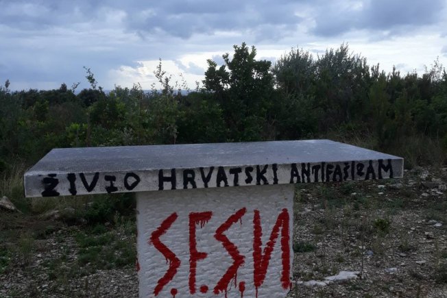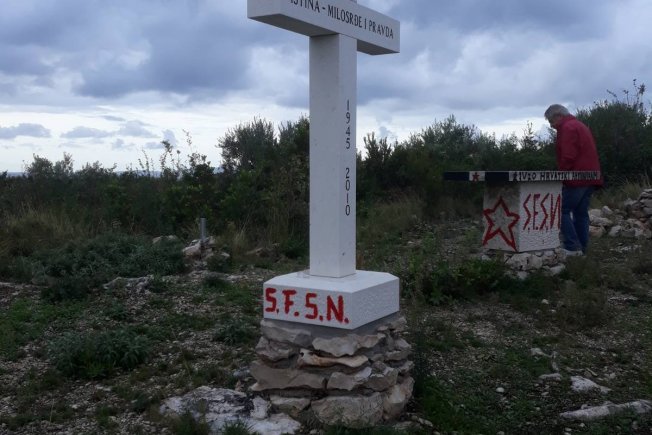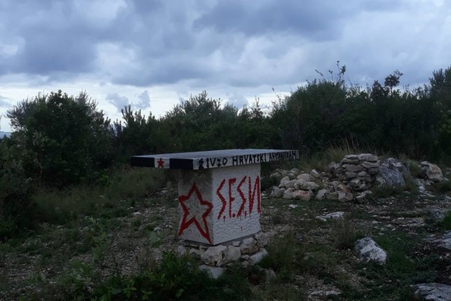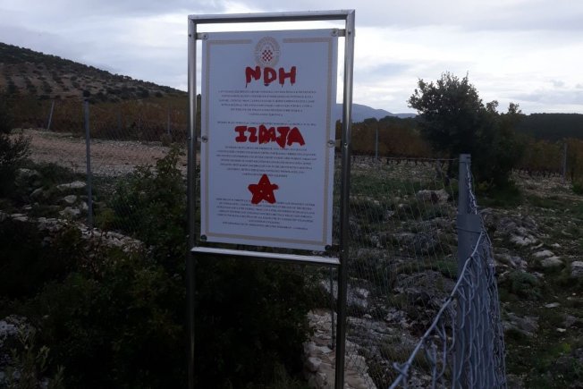 "Naime, proteklog vikenda išaran je crvenom i crnom bojom s neprimjerenim porukama i zločinačkim simbolima (zvjezda petokraka), nedavno uređeni oltarni prostor oko jame Bultina (Križ, Oltar, Info tabla).