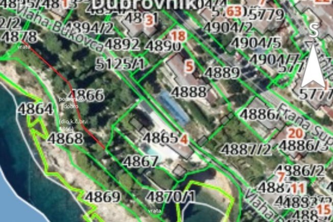 Najvažnija nekretnina kod određivanja granice pomorskog dobra u području kupališta Gjivović jest k.č.br. 4866 k.o. Dubrovnik (nova izmjera), koja nužno mora biti parcelirana tako, da postojeća pješačka staza unutar parka, koja se proteže "od vrata do vrata" (skice u prilogu), bude u zoni pomorskog dobra.