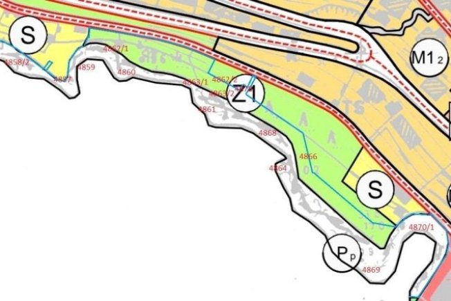 Nekretnina k.č.br. 4862/2 k.o. Dubrovnik (nova izmjera) je u GUP Grada Dubrovnika, označena kao "Z1" (javni park). Na gornjem dijelu pripadajućeg zemljišta (neposredno "ispod" puta Vlaha Bukovca) je čempresata, pa tu nekretninu, koju narod zove Lazina, ima smisla parcelirati granicom pomorskog dobra po mociri jer je donji dio te čestice, u naravi opasna strmina nad morem.