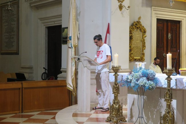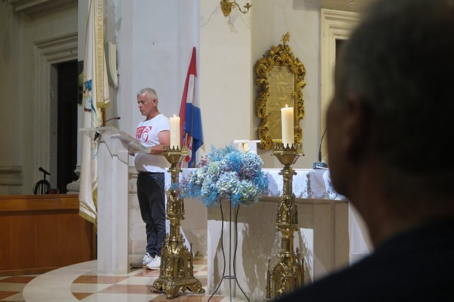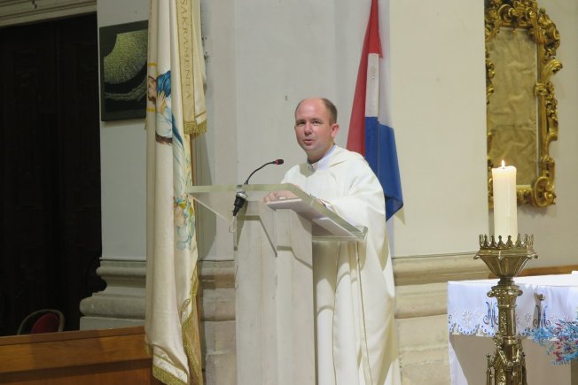 Katedralni župnik don Marin Lučić pozdravio je na početku sudionike hodočašća koje je nakon 75 dana stiglo iz Osijeka u Dubrovnik, piše Angelina Tadić na stranicama Dubrovačke biskupije.