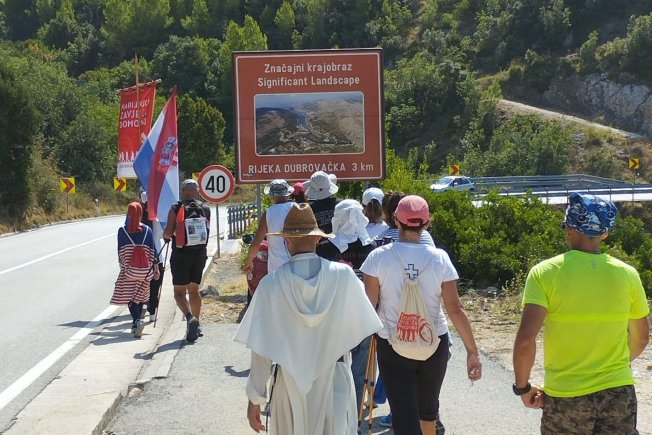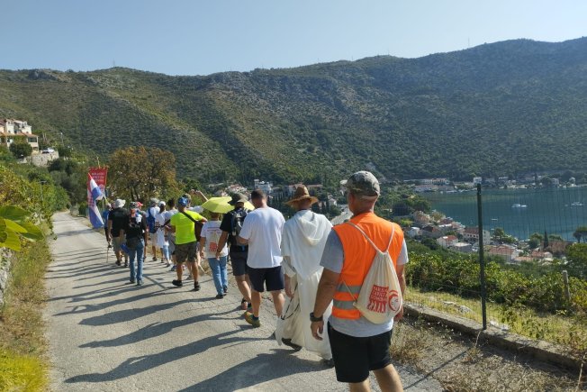 Na područje Dubrovačke biskupije hodočašće je stiglo iz Neuma 19. kolovoza. Večernja zaustavljanja imali su u Slanom, Orašcu i Rožatu gdje su ih župne zajednice rado primale i ugošćavale ih. Pretposljednjeg dana hodočašća sudionici su s duhovnikom Pečekom jutarnju misu slavili u crkvi Pohođenja Marijina u Orašcu, župi u kojoj se već godinama svakog dana moli krunica za domovinu. Uz molitvu i upoznavanje s poviješću mjesta kroz koja su prolazili, hodočasnici su se zaustavljali i molili na spomen obilježjima poginulih u Domovinskom ratu. U molitvi i pjesmi posljednjeg dana stigli su preko Brgata do kamenog križa na Srđu poviše Dubrovnika.