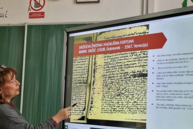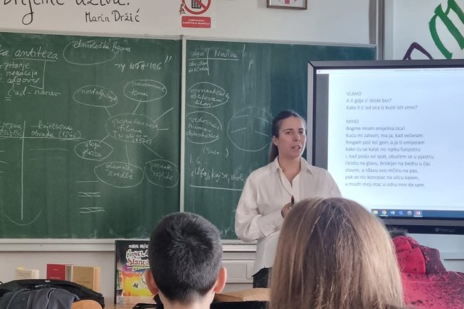 Učenici su kroz interaktivnu nastavu i rad u grupama imali priliku čitati i analizirati odabrane fragmente Držićeve komedije Novela od Stanca te osvijestiti i komentirati Držićeve svevremenske proverbijalne rečenice što je jedan od aspekta Džićeve ostavštine zbog koje nam je on i dan danas aktualan i zanimljiv.