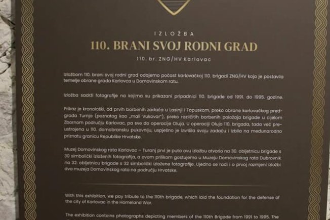 Muzej Domovinskog rata Karlovac – Turanj prvi je put ovu izložbu otvorio uz 30. obljetnicu osnutka Brigade sa 30 simbolički izloženih fotografija, a ovom prilikom gostuje u Muzeju Domovinskog rata Dubrovnik na 32. obljetnicu Brigade s 32 simbolički izložene fotografije. Postav je obogaćen povjesnicom 110. brigade ZNG/HV i popisom njenih poginulih i ranjenih pripadnika.