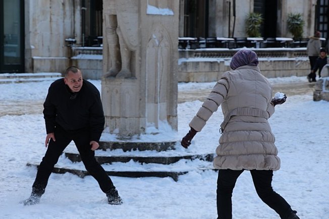 Sugrađani, a posebno oni mlađi, uživali su u snijegu, po cijelom gradu niknuli su snjegovići, a bilo je i grudanja.