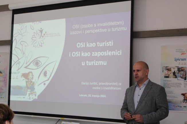 Kada trebamo dati definiciju što je zapravo pristupačan turizam, kažemo da on predstavlja sve oblike i usluge koje treba oblikovati kako bi je svi mogli koristiti. Kada govorimo o pristupačnom turizmu, govorimo o osobama s invaliditetom, ali istovremeno govorimo o osobama starije životne dobi, govorimo o roditeljima s malom djecom, o roditeljima s više djece. To su ljudi koji možda nisu osobe s invaliditetom, ali privremeno imaju poteškoće s kretanjem. A što možemo činiti za osobe s invaliditetom? Prije svega u turizmu imamo brojne poslove koji su različiti po svom sadržaju, po svom opsegu, po svom vremenu trajanja ili po načinu obavljanja. Tako zapravo možemo dati odgovarajuću prilagodbu i pristup, a što je najvažnije bez predrasuda poslodavaca, omogućiti osobama s invaliditetom da budu vrijedni zaposlenici“, zaključio je Darijo Jurišić, pravobranitelj osoba s invaliditetom.
