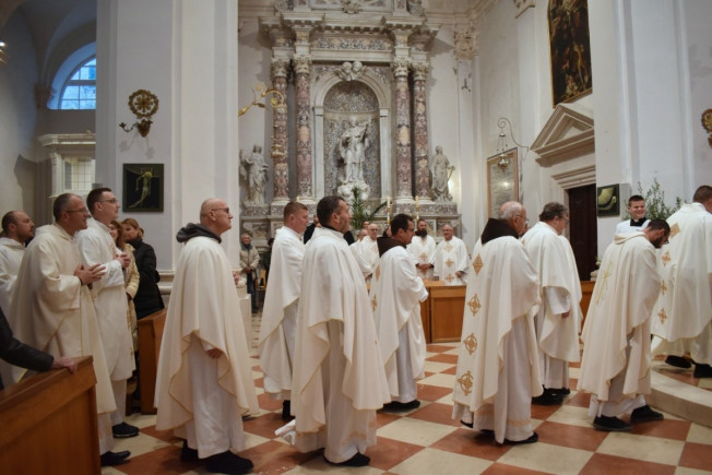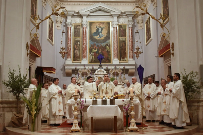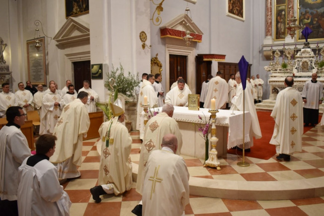 Na misi je biskup posvetio ulja koja će svećenici ponijeti u svoje župne zajednice za podjelu sakramenata. Ulja su prinijeli svećenik, đakoni, bogoslov i postulantica. Tijekom euharistijskog slavlja svećenici su obnovili svoja svećenička obećanja, a na samom kraju, prije blagoslova, biskup Glasnović izmolio je molitvu pape Lava XIV. za svećenike.