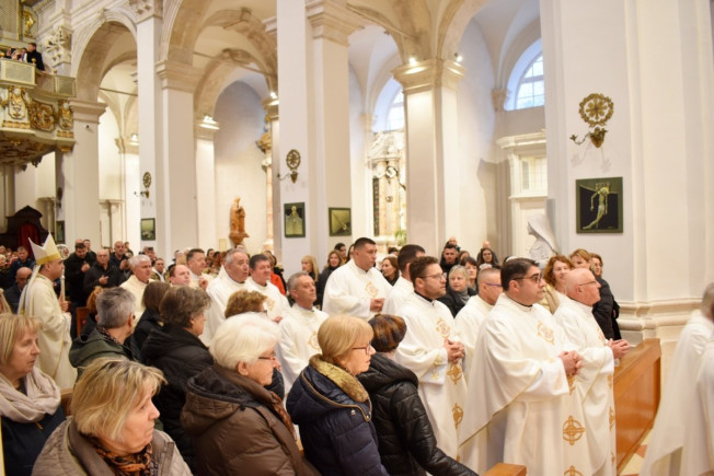 Od prošle godine sve do danas, biskup je istaknuo važnije događaje: svećeničko ređenje dvojice mladomisnika don Maria Tošića i don Maria Katalinića, đakonsko ređenje fra Antonia Gospića, svećeničke jubileje fra Vita Smoljana, don Josipa Mazarekića, don Vlada Markića i don Jerka Bana te preminuće fra Pija Pejića. Sa zahvalnošću za njihovu službu, kao i službu svih svećenika, biskup Glasnović poručio je da „sve što jesmo i sve što činimo izvire iz Božje ljubavi“. Bog nikada nikoga ne prisiljava, njegova ljubav poštuje slobodu, on okuplja, poziva, štiti i strpljivo čeka odgovor.