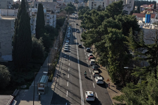Nakon asfaltiranja izvedeno je i ocrtavanje prometne signalizacije na dionici od semaforskog križanja do kružnog toka na Pošti Lapad.