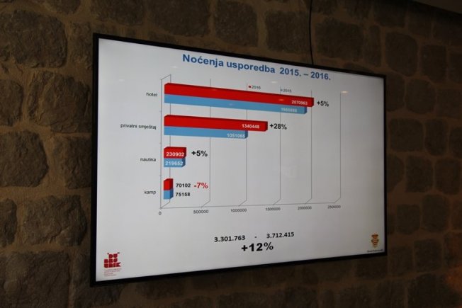 2016. godina je po pitanju turističkih brojki bila izuzetno uspješna te je u njoj ostvaren milijunti dolazak i preko 3 700 000 noćenja, što je 12 posto više u dolascima odnosno 13 posto više u noćenjima nego lani.