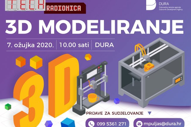 Četvrta po redu radionica „3D modeliranje“ održati će se 07. ožujka 2020. godine u prostorijama DURA-e. (Branitelja Dubrovnika 15, 20000 Dubrovnik).