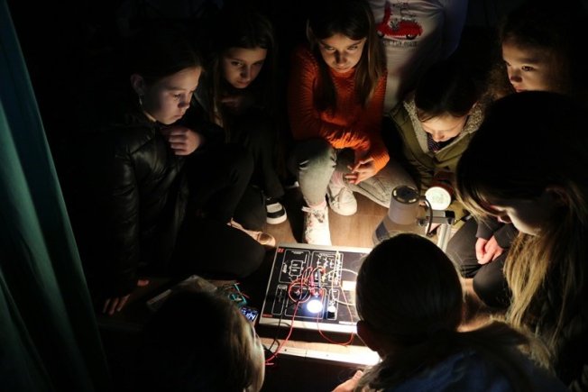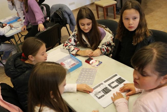 Nakon toga polaznici su primijenili svoje znanje i kroz radionicu Šarenog strujnog kruga gdje su spajali osnovne strujne krugove sa specijaliziranim setovima, proučavali kako rade led diode i ventilatori ovisno o vrsti spoja, te su isprobali kako radi senzor ravnoteže.