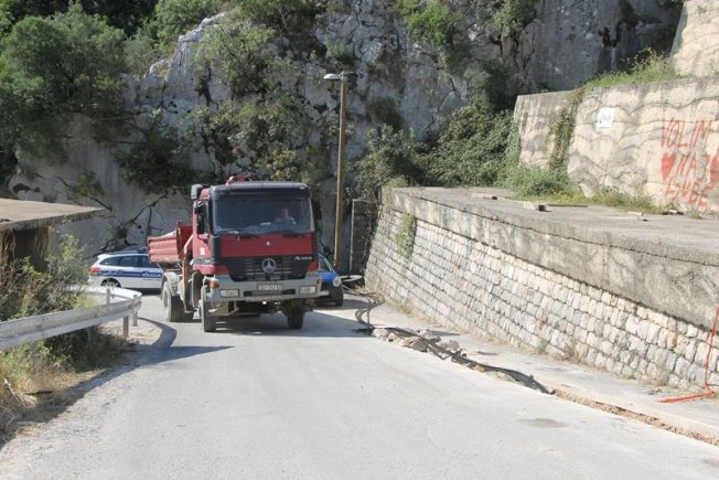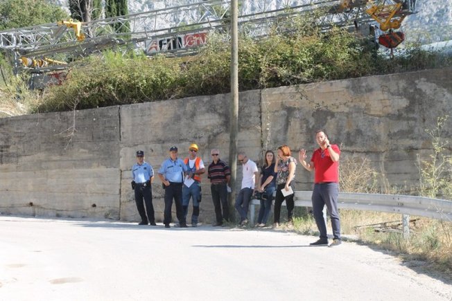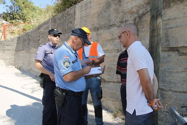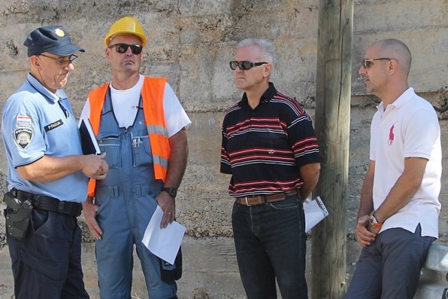 Leon Šprlje i Ivo Kralj i prošlog su tjedna izašli na teren te zapriječili prolazak kamiona prema gradilištu. Ovaj put nisu blokirali promet. Na teren je izašla i policija.