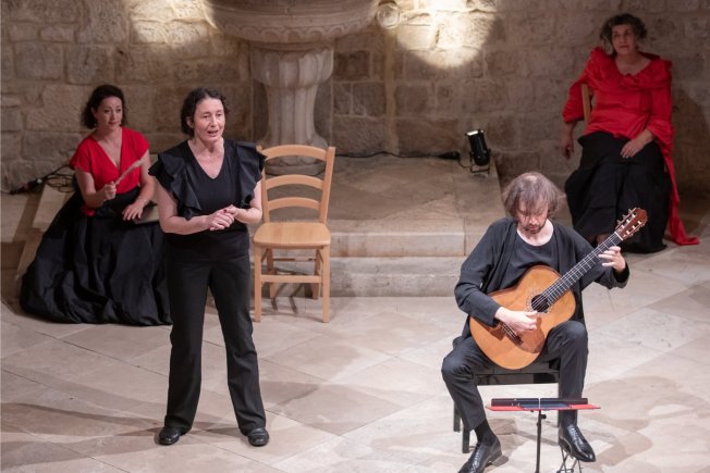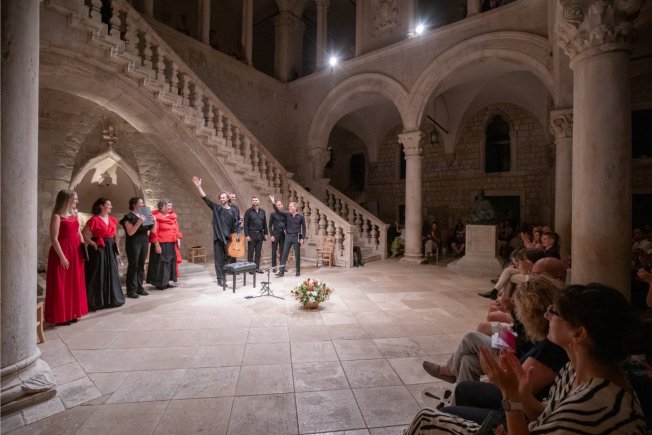 Opojne andaluzijske note sinoć su odzvanjale Kneževim dvorom gdje su vrhunski glazbeni umjetnici, vokalni ansambl Antiphonus i gitarist Petrit Çeku, festivalsku publiku odveli na snovito glazbeno putovanje izvodeći folklorom nadahnut program Romancero Gitano.