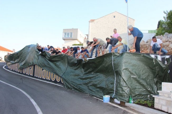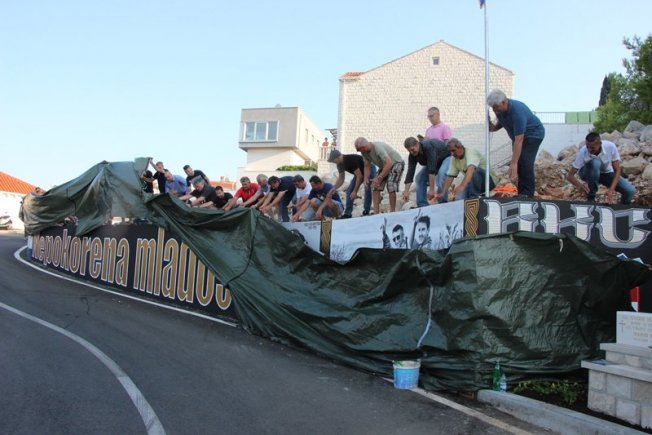 Uz puštanje hrvatske himne, branitelj Željko Gustin Žika podigao je hrvatsku zastavu, nakon čega je otkriven mural, uz pljesak, suze, ali i ponos i oduševljenje okupljenih, njih stotinjak. Među njima su se tako našli branitelji, njihove obitelji i prijatelji, stanovnici Lapada, ali i gradonačelnik Mato Franković te zamjenica gradonačelnika Orlanda Tokić. Župnik crkve sv. Mihajla don Robert Čibarić je izmolio odrješenje za sve poginule branitelje i održao prigodni govor.