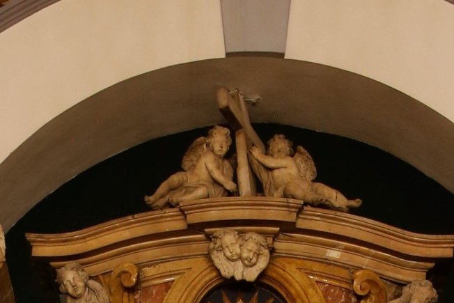 "Riječ je o mramornom baroknom oltaru koji je napravljen nakon velikog potresa 1667., u kojem je bila potpuno uništena stara crkva iz 1317. Oltar je smješten ispod luka, a rad je majstora Celija Toshini iz Ancone 1712. Na vrhu oltara dva su anđela koji su između sebe imali veliki kameni križ težine oko 100 kilograma, a bio je sidren na tijelo oltara i učvršćen za luk. Uslijed potresa popustila su učvršćenja pa je jedan dio križa pao u kor iza oltara, raspao se, i zadržao se uglavnom na grobnoj ploči biskupa Anđela Franchi koji je tu ukopan 1751. Drugi dio križa udario je u menzu oltara, malo je oštetio, i raspao se u više komada, te se zaustavio u crkvi na podnožju oltara," objavio je fra Stipe Nosić iz Franjevačkog samostana Male braće.