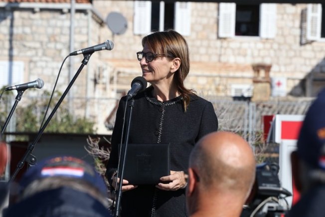 "Ovo je godina u kojoj se obilježava 30 godina brojnih postrojbi. Obilježavamo brojne slavne trenutke, a obilježavamo i najtužnije trenutke iz naše hrvatske povijesti i to od Vukovara do Dubrovnika. Ali uvijek sa velikim poštovanjem, s ponosom i sa sviješću što je u tom vremenu i što su u tim trenucima značili doprinosi svakog pojedinca, poput vas ovdje, i poput nažalost, brojnih vaših suboraca koji su poginuli, koji su nestali, ali i svih onih koji su u tim trenutku svojim poslovima uključili se u obranu. Nitko od vas u tom trenutku nije mogao sanjati da ćete vi biti ovdje pčostrojeni, a da će iza vas biti brod Dubrovnik koji sudjeluje u NATO operacijama i da će iza vas stajati neki novi ljudi koji su upravo zahvaljujući vama odabrali to časno zanimanje i danas štite naše more, štite našu Domovinu", rekla je ministrica Obuljen Koržinek.