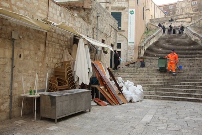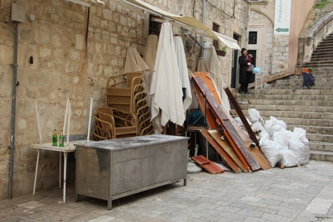 Razbacani štandovi i pultovi u Uvali, u samom centru Grada, na najljepšim gradskim šetnicama nisu najljepša razglednica Dubrovnika niti su takvi prizori ono što Dubrovčani zaslužuju nakon turističke sezone. Stoga bi svi oni koji zarađuju na račun Grada trebali razmisliti o pokazivanju većeg poštovanja prema onome što je u konačnici izvor njihove zarade.