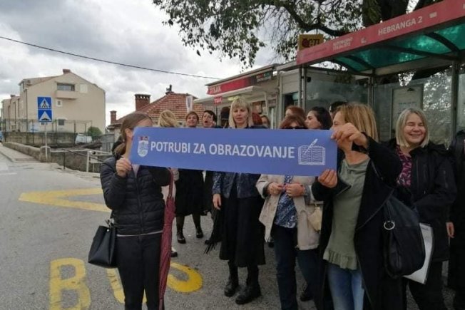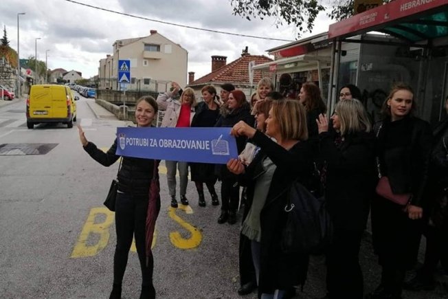 Nekoliko nastavnica iz dubrovačkih osnovnih škola jučer su organizirale prosvjednu akciju 'Potrubi za obrazovanje'.