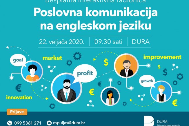 Iz tog razloga DURA za vas organizira radionicu „Poslovna komunikacija na engleskom jeziku“ koja će se održati u subotu, 22. veljače 2020. godine u prostorijama DURA-e, na adresi Branitelja Dubrovnika 15, 20 000 Dubrovnik s početkom u 09:30 sati.