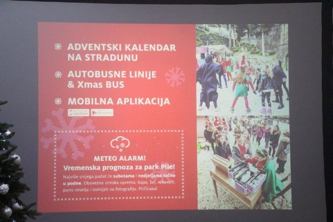 Francesca Tevšić iz Dubrovačkih ljetnih igara koja je predstavljala program Dubrovačkog zimskog festivala istaknula je ovogodišnje nove sadržaje, a to je Stanica Sjeverni pol za djecu u Luži gdje će biti zanimljivi likovi, a roditelji će od 16 do 19 sati moći dovesti djecu da crtaju i zabaljaju se. Druga novost je Meteo stanica u parku u Pilama gdje će djeca uživati u umjetnom snijegu i fotografiranju. Dubrovački školarci će imati priliku ukrasiti izloge svojim radovima. U Uvali Lapad gdje će biti klizalište održat će se 'Šarena zima' bogata brojnim zabavnim programima i nastupima, a u Mokošici 'Subotnja blagdanska popodneva' koja će se održavati na igralištu pokraj caffe bara Kiss.