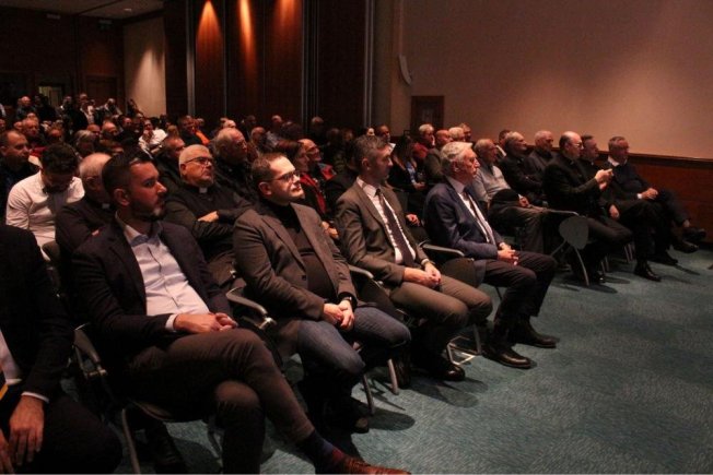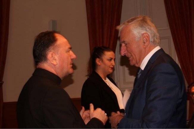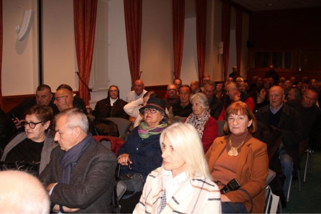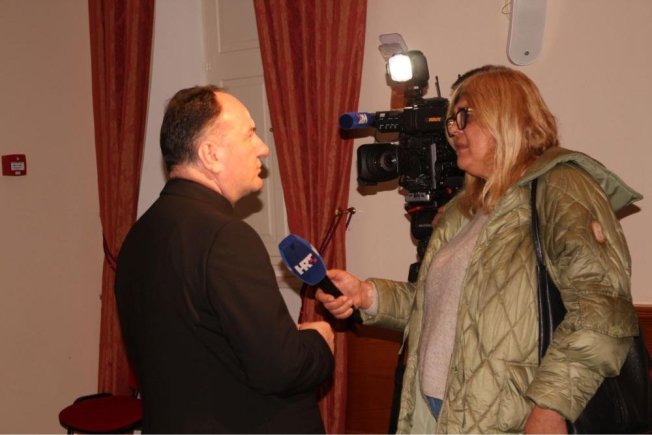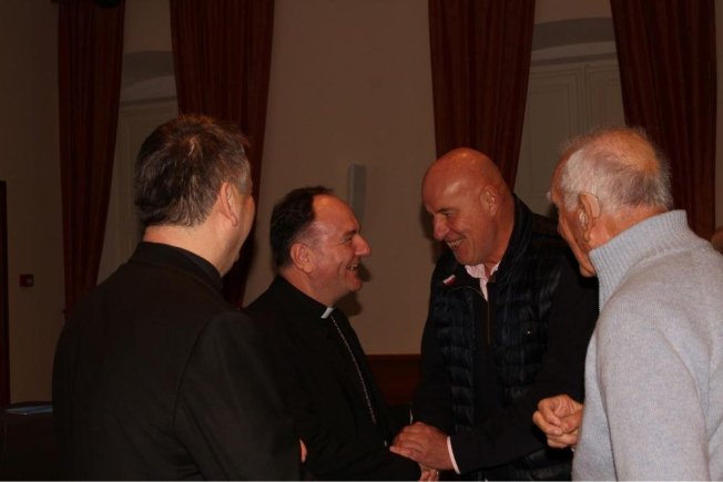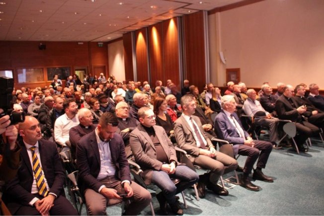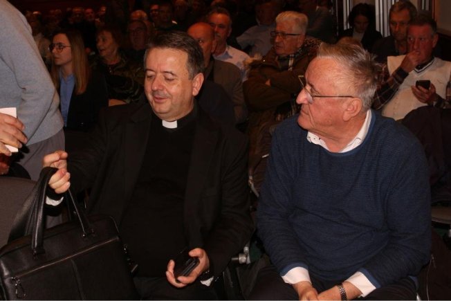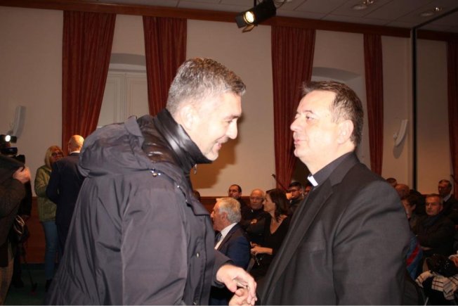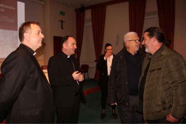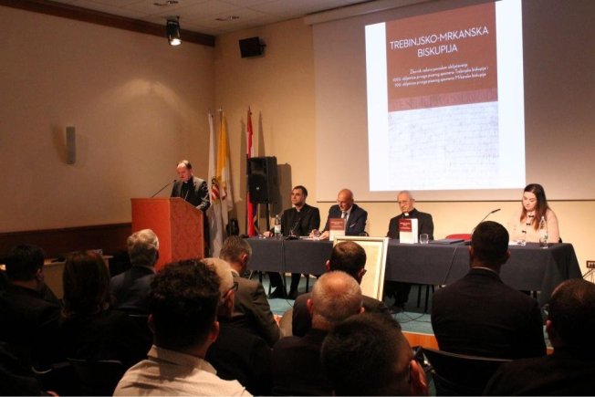 Dubrovački biskup Roko Glasnović, umirovljeni zadarski nadbiskup Želimir Puljić, mostarsko-duvanjski biskup i apostolski upravitelj trebinjsko-mrkanski Petar Palić, predsjednik HKD Napredak-Dubrovnik Marinko Marić te predsjednica Vijeća za kulturu i znanost Dubrovačke biskupije povjesničarka i muzeologinja Marijeta Radić Grabovac sudjelovali su u dvorani Ivana Pavla II. na predstavljanje zbornika “Trebinjsko-mrkanska biskupija“.